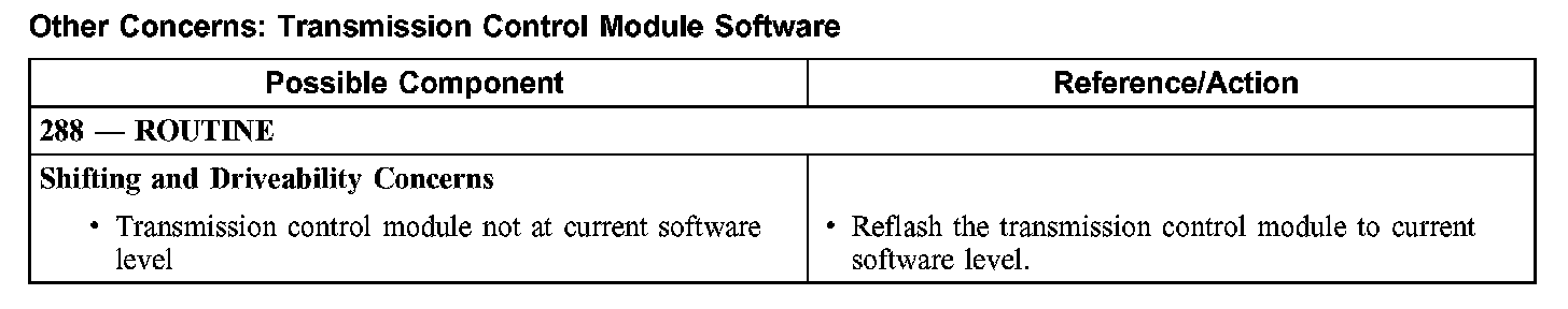 Other Concerns: Transmission Control Module Software:
