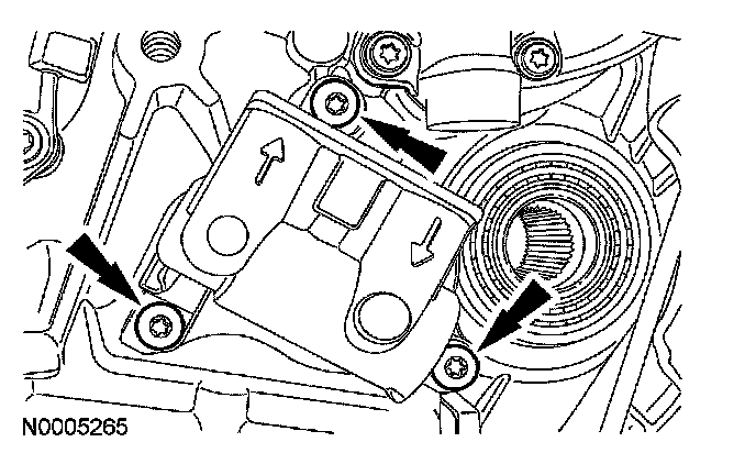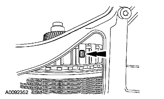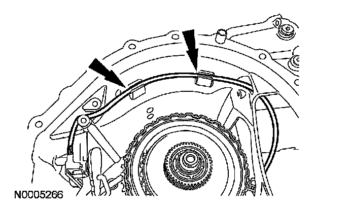 32. Make sure when routing the range selector valve assembly wiring harness that it is between the bolt holes and is pressed into the case retainers.