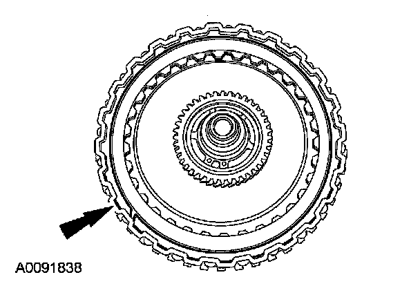 ^ If the final measurement (D) is not within specification, install a new selective snap ring (either thicker or thinner) until the clearance specification is achieved.