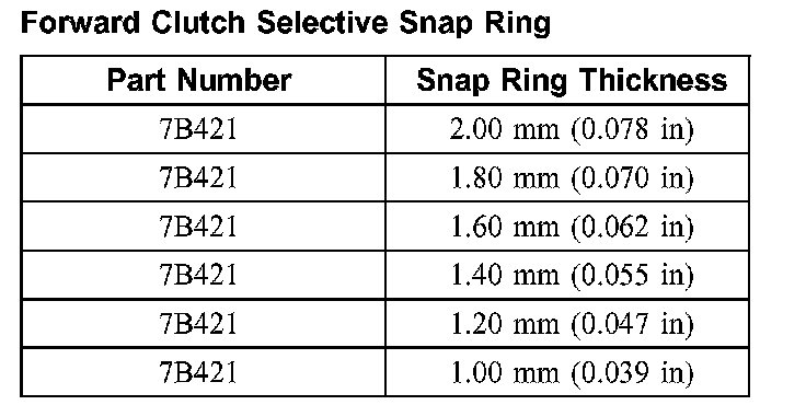 Forward Clutch Selective Snap Ring: