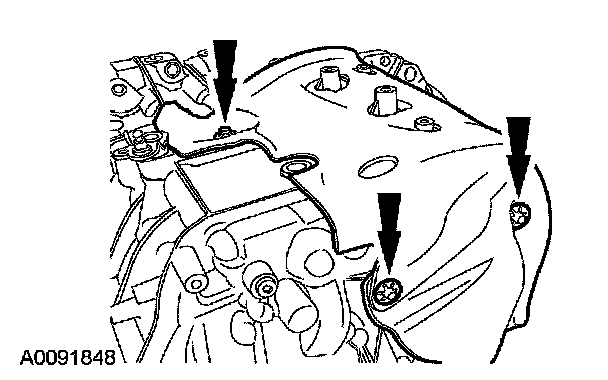 7. Install the 3 transaxle-to-engine retaining bolts.