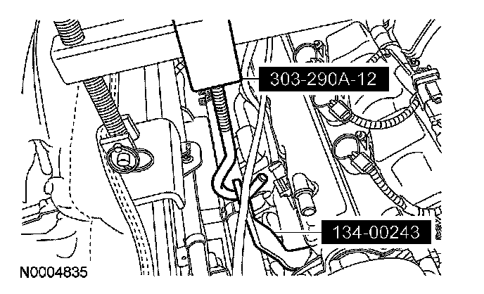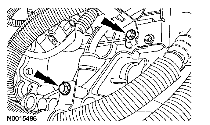 10. Position the transmission fluid cooler tubes in place and install the bolts.