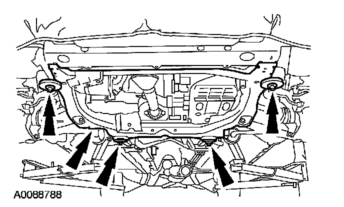 15. Using a suitable powertrain lift, position the subframe in place and install the 4 bolts.