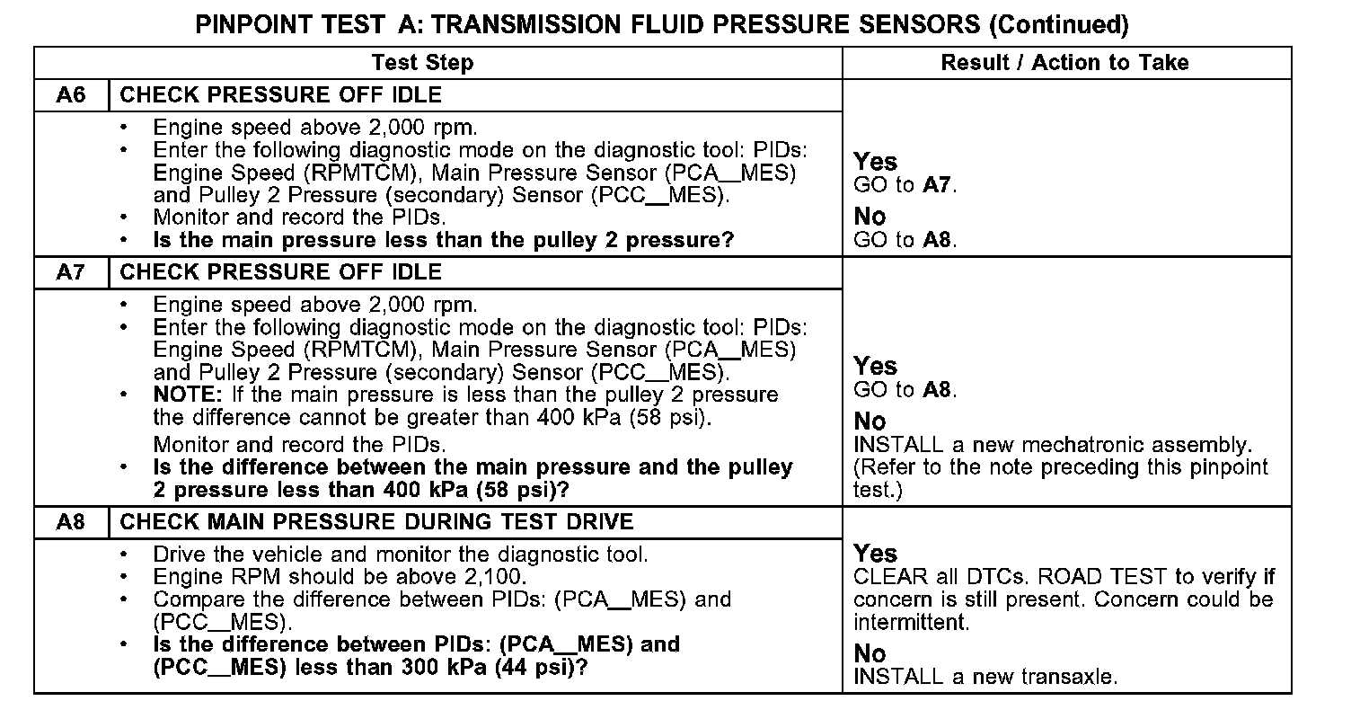 Pinpoint Test A: Transmission Fluid Pressure Sensors