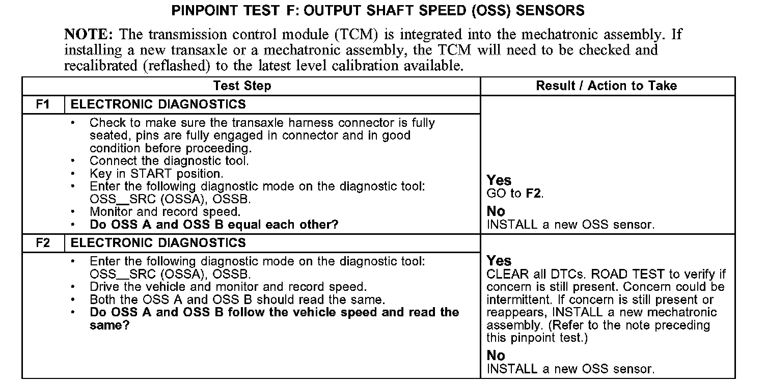 Test F: Output Shaft Speed (OSS) Sensors