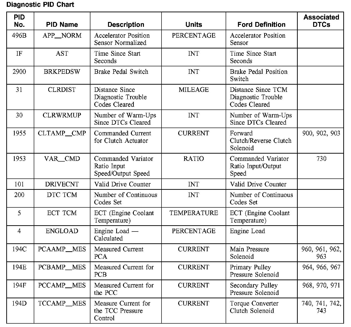 Diagnostic PID Chart (Part 1):