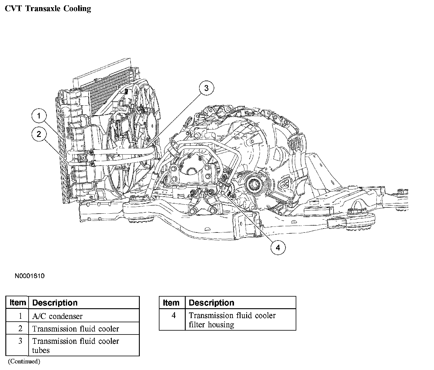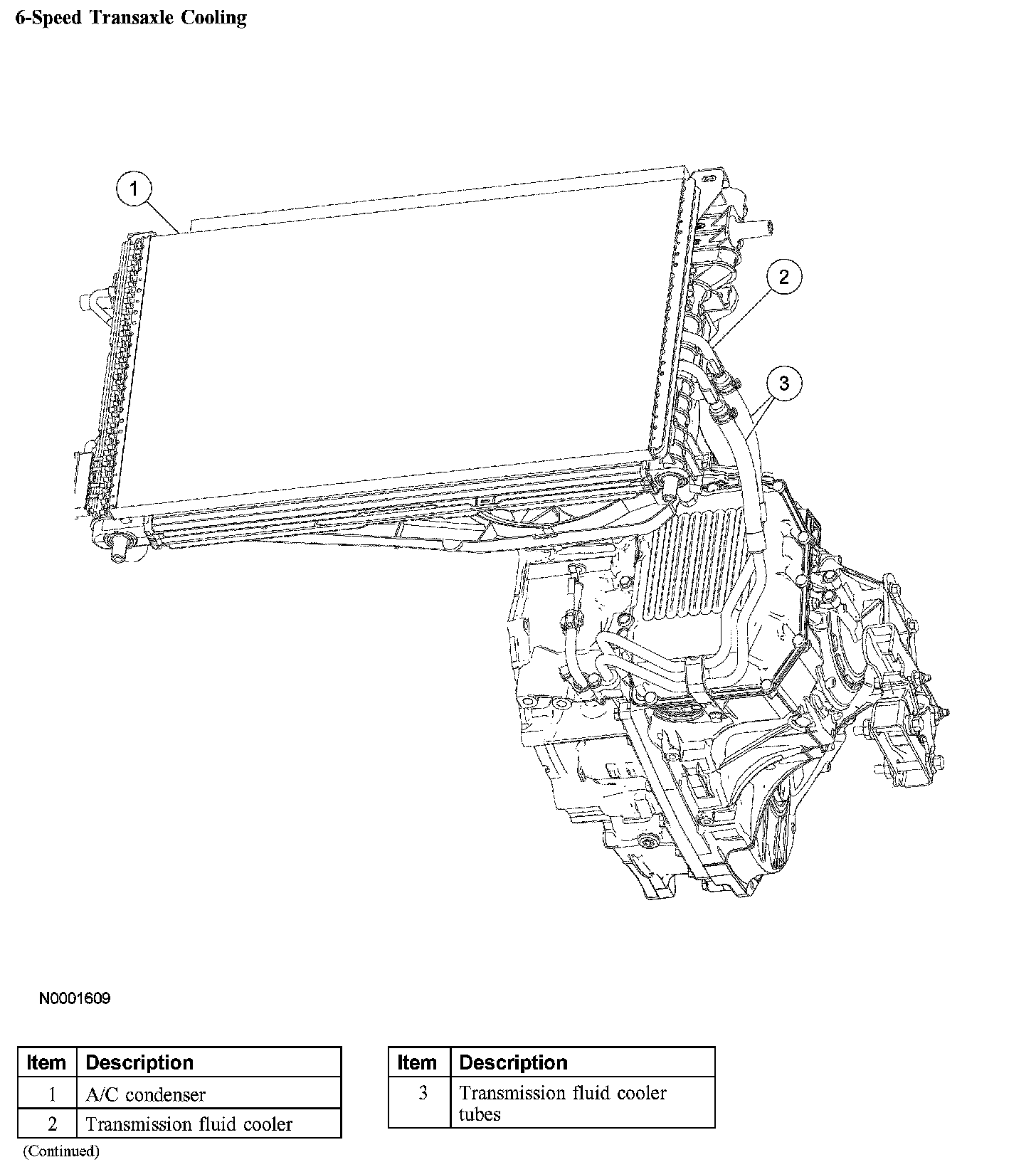 Transaxle CoolingThese vehicles are equipped with an external fluid cooler. The cooler is mounted between the engine radiator and the A/C condenser. In operation, transmission fluid travels from the transaxle to the fluid cooler then back to the transaxle. The fluid cooler transfers heat from the transmission fluid to the outside air.