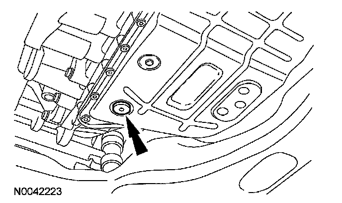 3. Remove the fluid pan drain plug and allow the fluid to drain.