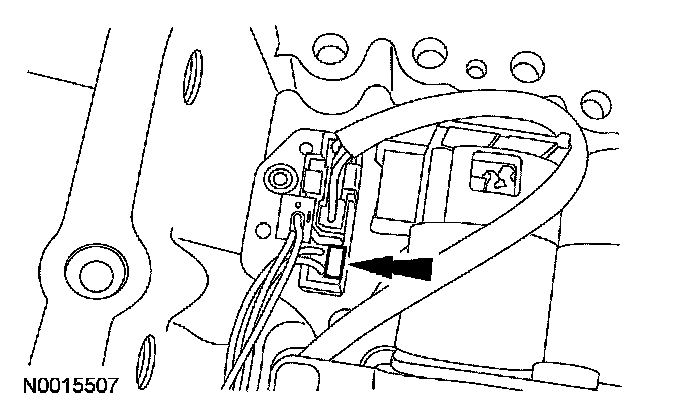 Depress the tab on the electrical connector and pull up on the output shaft speed (OSS) connector to disconnect.