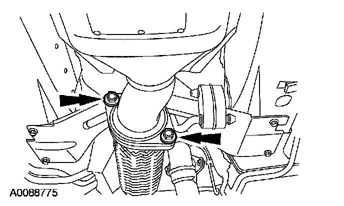 5. Remove the 2 catalytic converter pipe bolts, disconnect the rubber hanger and remove the pipe.