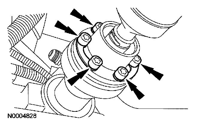 6. NOTE: To maintain the initial driveshaft balance, index-mark the driveshaft flange and the output flange.