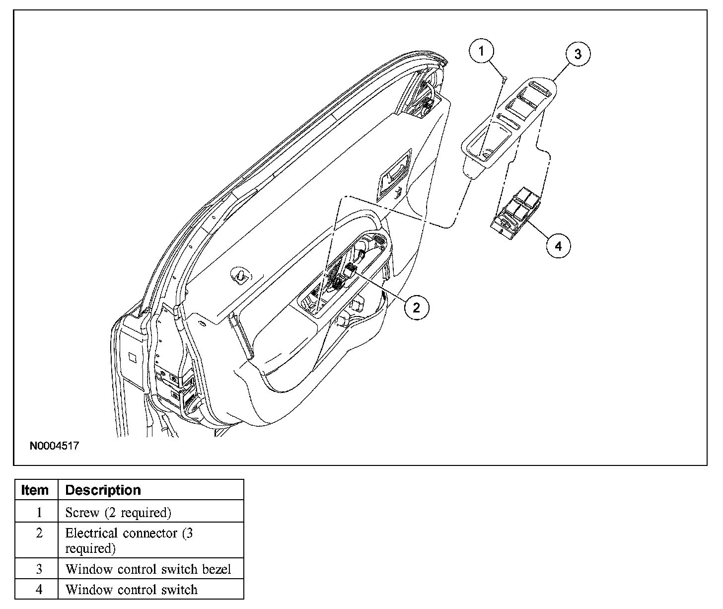 1. Remove the window regulator control switch bezel.