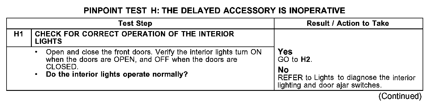 PINPOINT TEST H: THE DELAYED ACCESSORY IS INOPERATIVEH1: