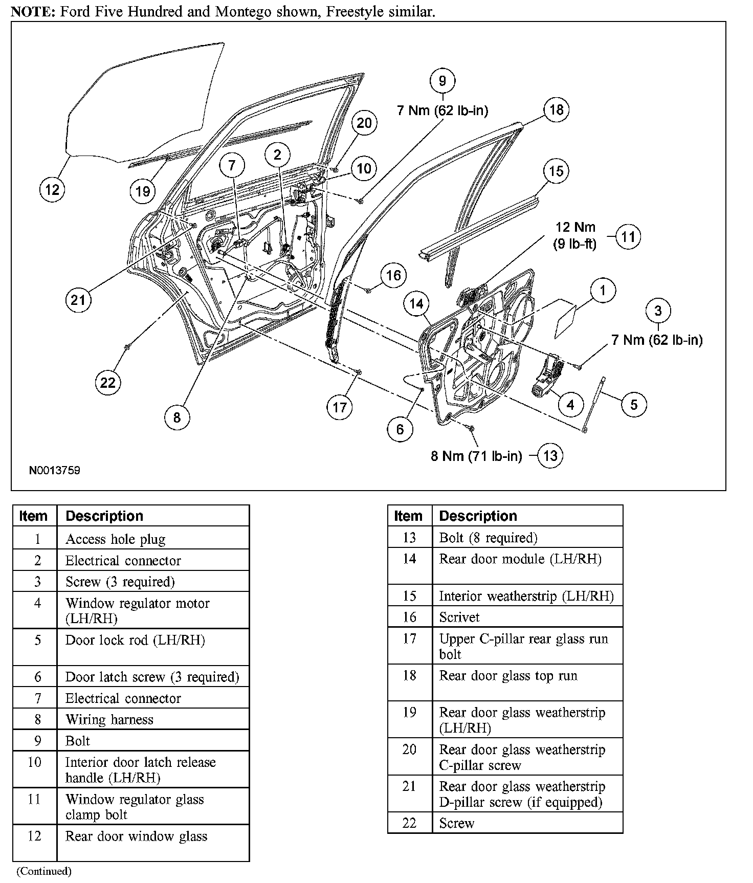REAR DOOR WINDOW REGULATOR AND MOTORRemoval and Installation