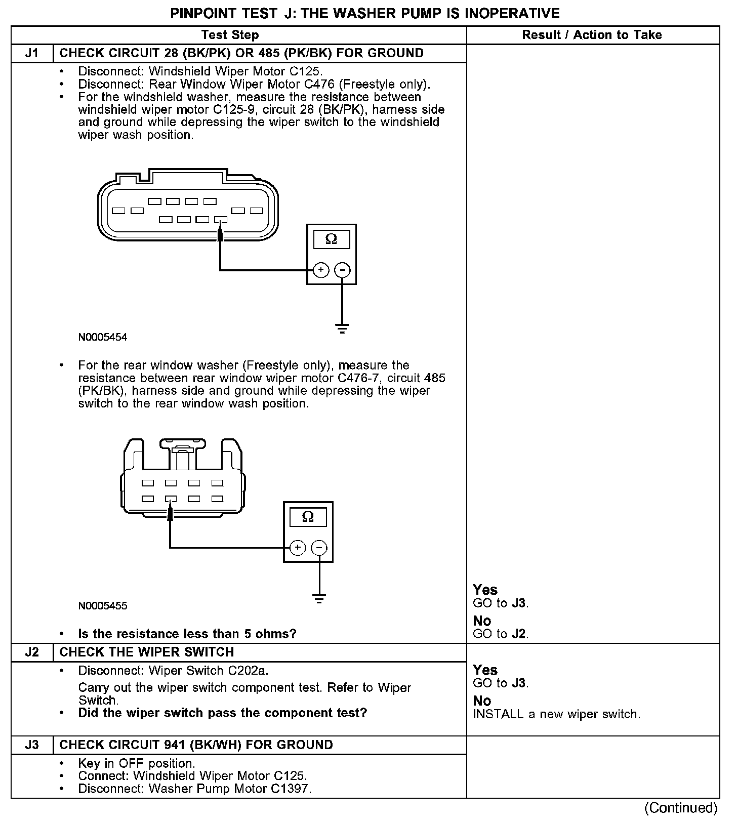 PINPOINT TEST J: THE WASHER PUMP IS INOPERATIVEJ1-J3: