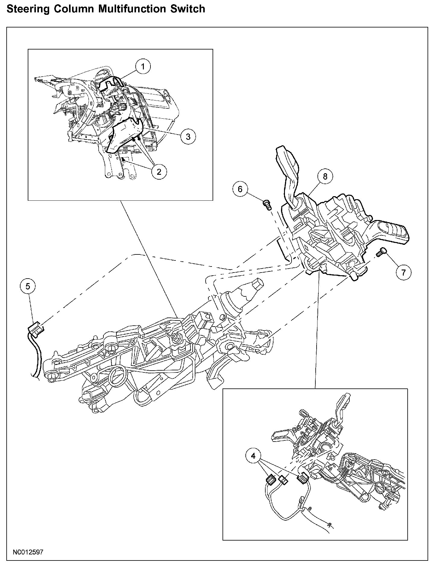 2. Remove the instrument cluster finish panel and the steering column upper shroud as an assembly.