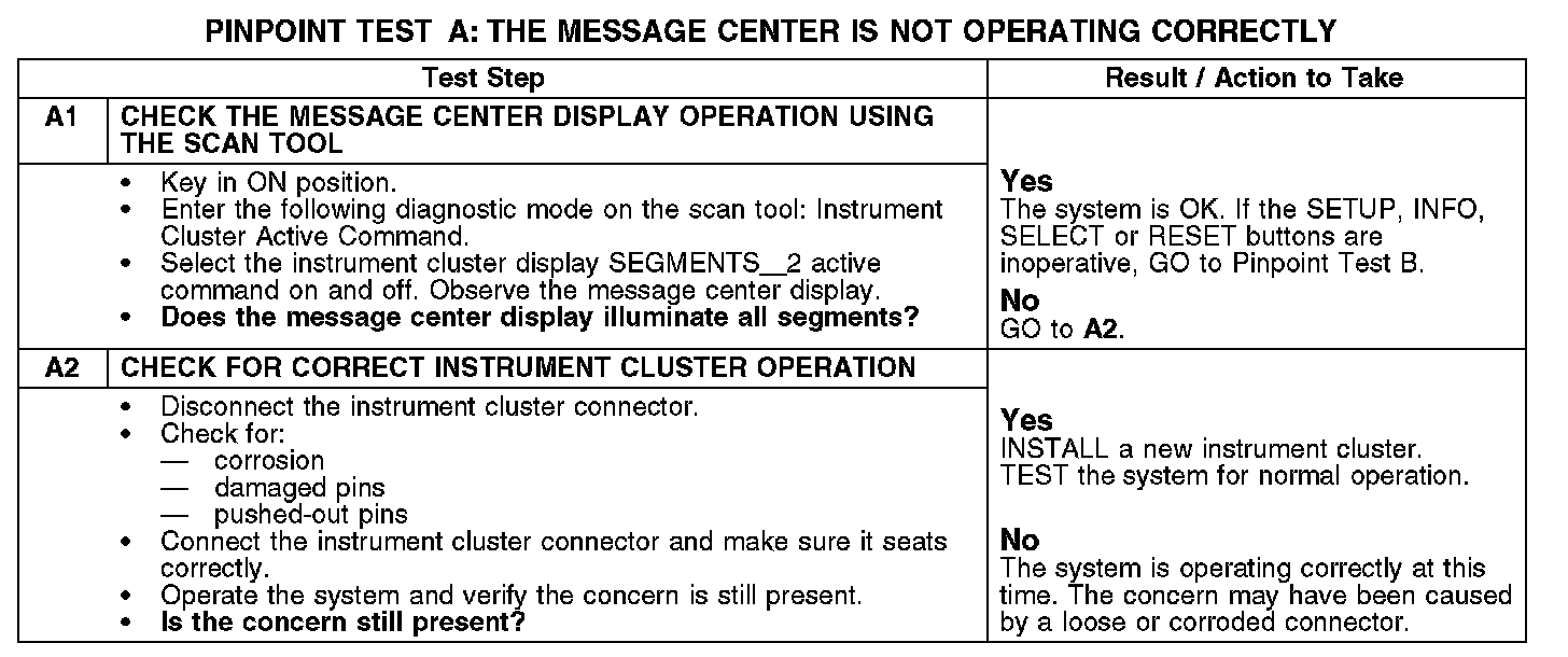 PINPOINT TEST A: THE MESSAGE CENTER IS NOT OPERATING CORRECTLYA1-A2: