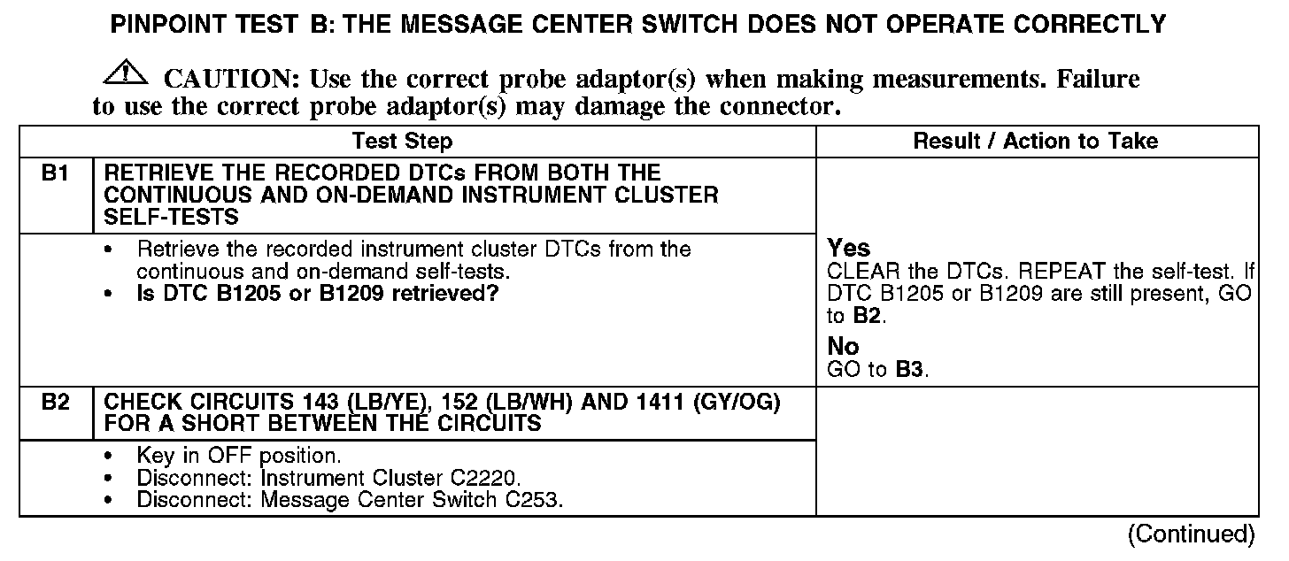 PINPOINT TEST B: THE MESSAGE CENTER SWITCH DOES NOT OPERATE CORRECTLYB1-B2: