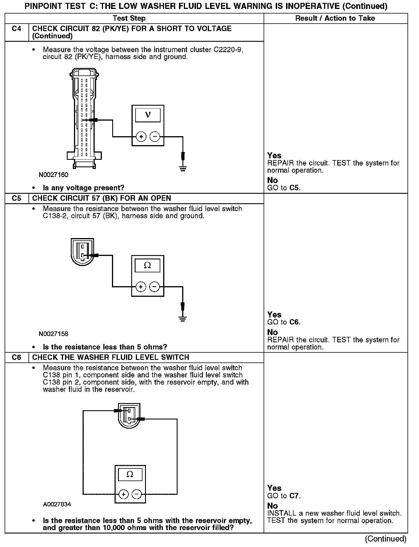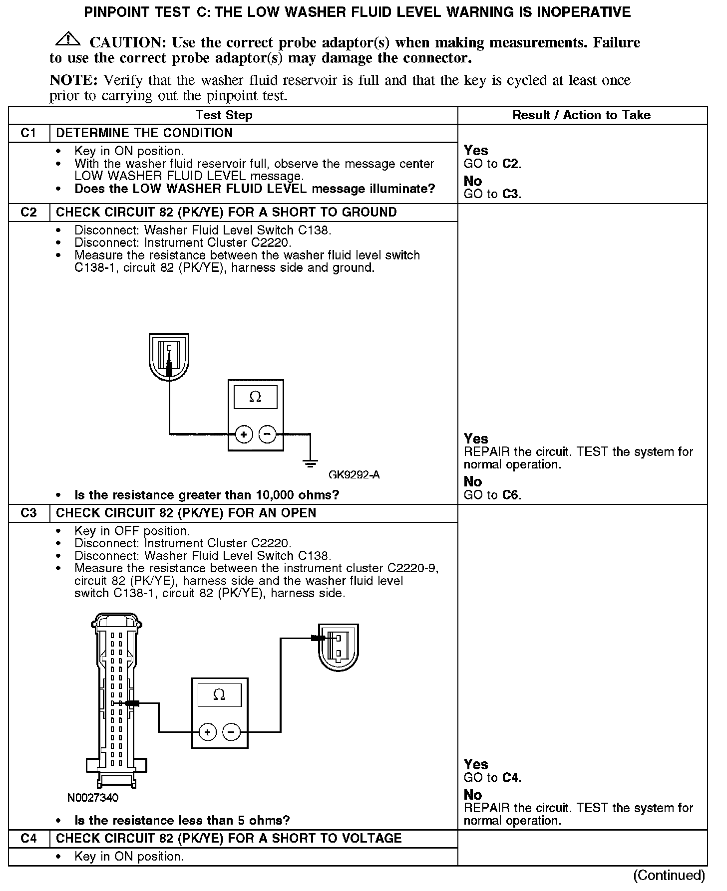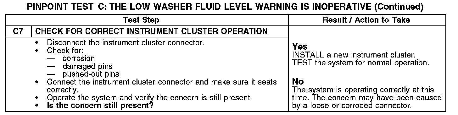 PINPOINT TEST C: THE LOW WASHER FLUID LEVEL WARNING IS INOPERATIVEC1-C4: