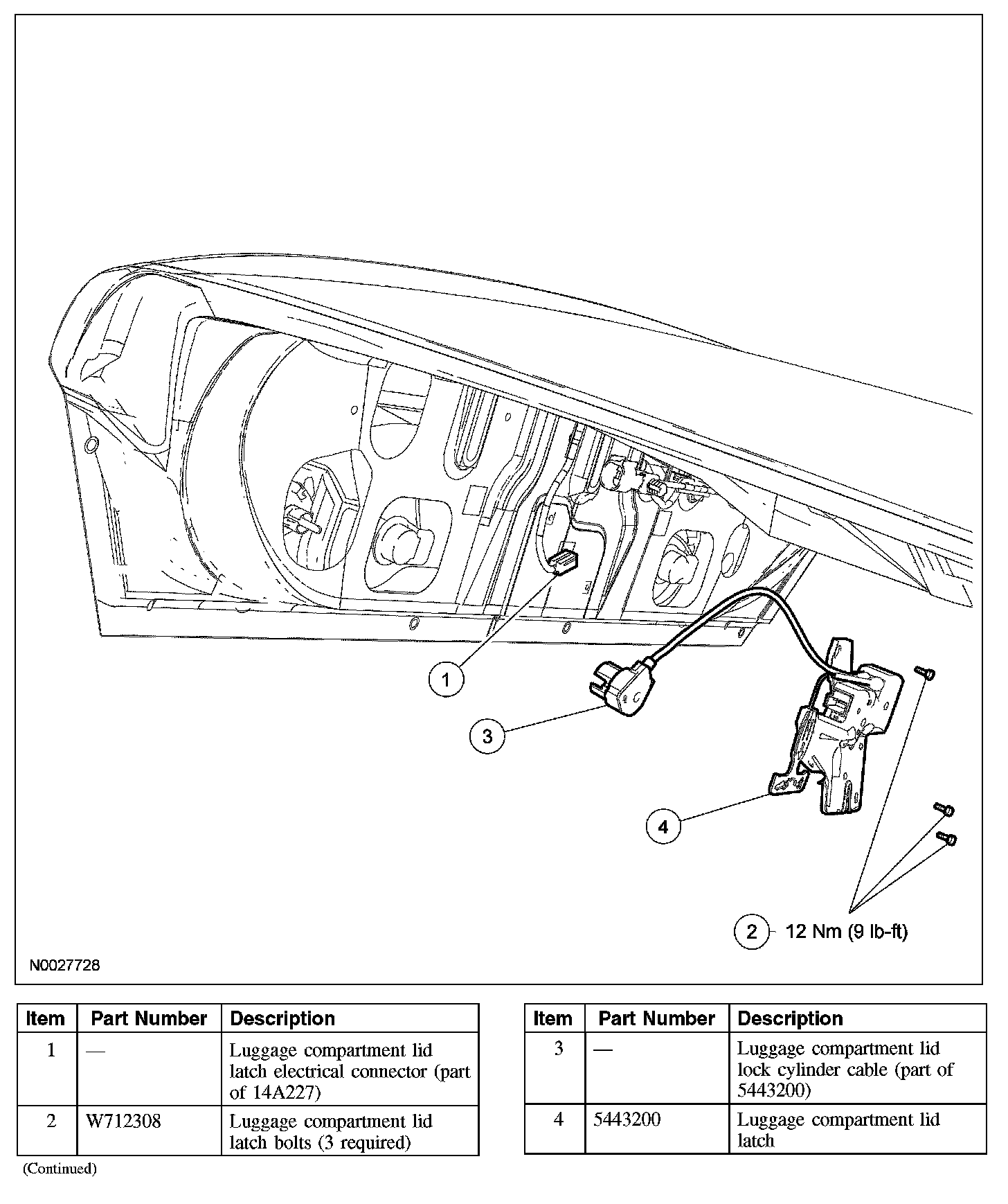 LUGGAGE COMPARTMENT LID LATCHRemoval and Installation