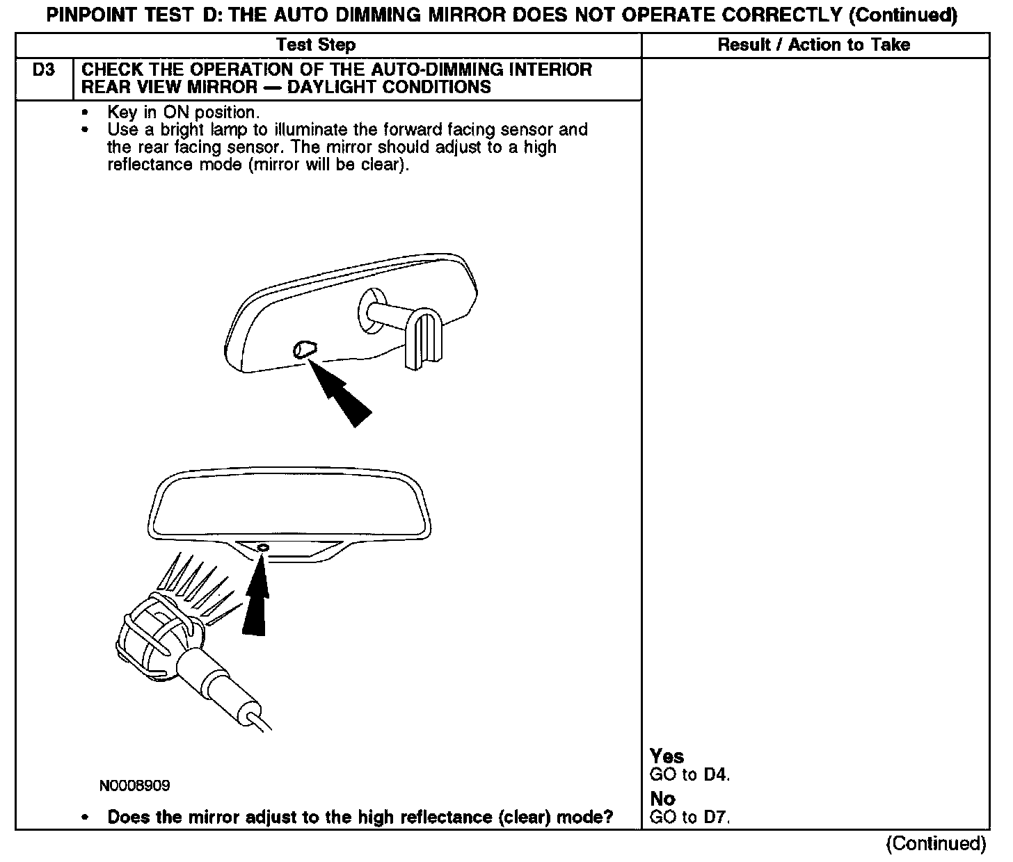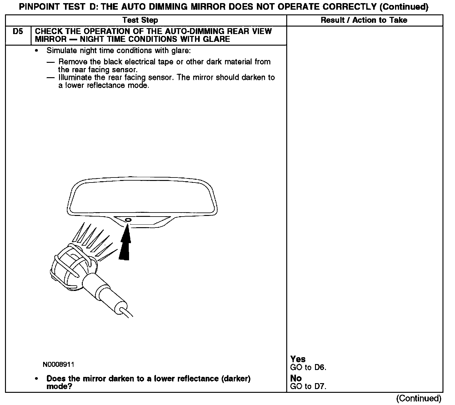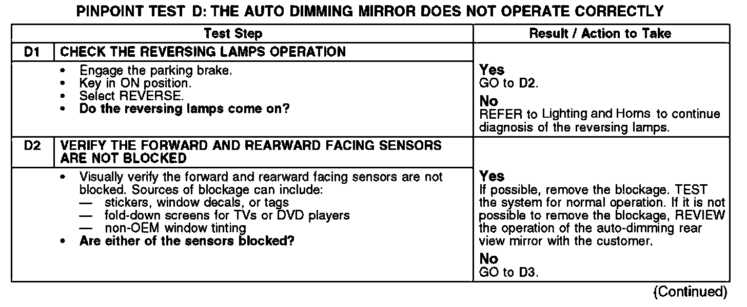 PINPOINT TEST D: THE AUTO DIMMING MIRROR DOES NOT OPERATE CORRECTLYD1-D2:
