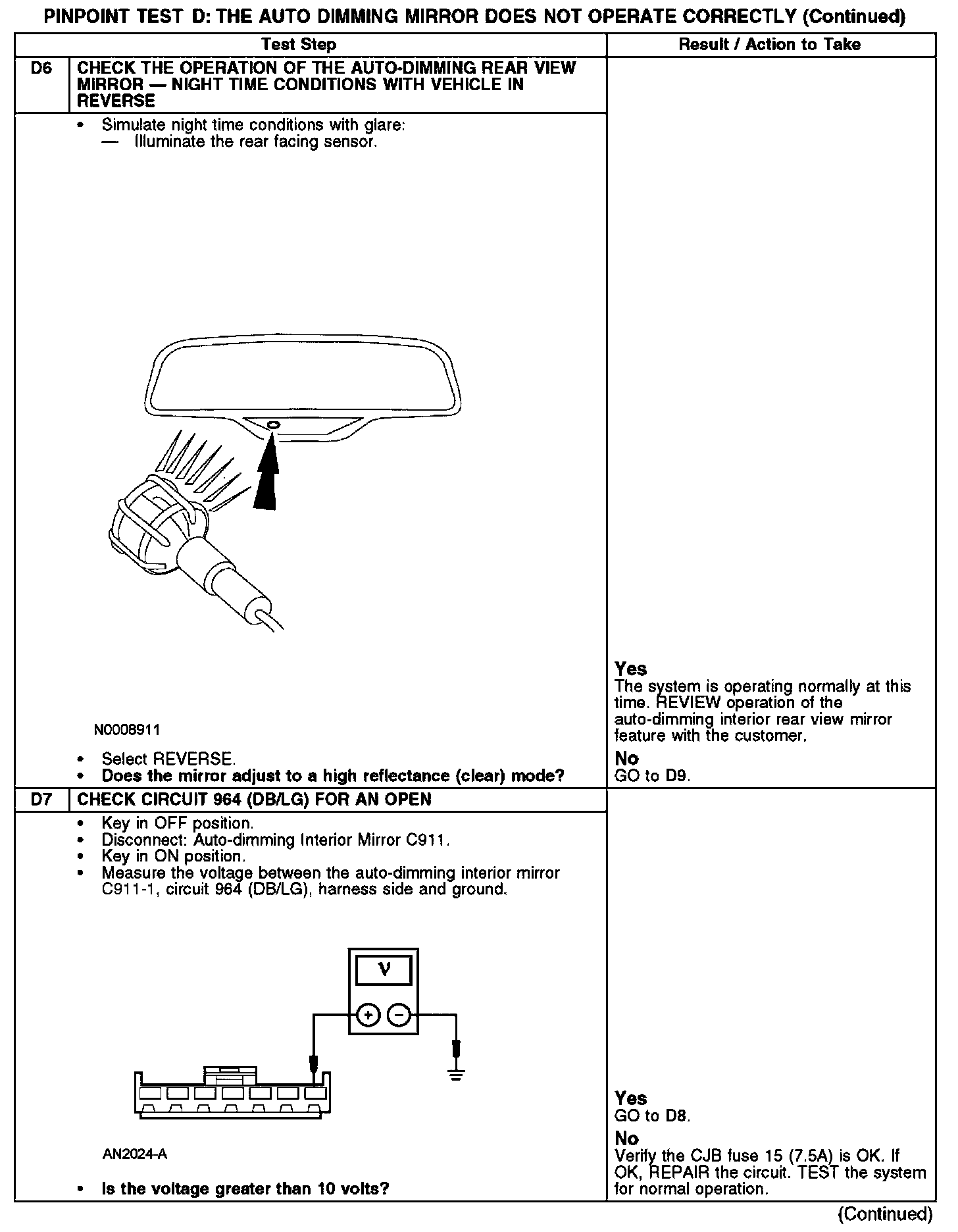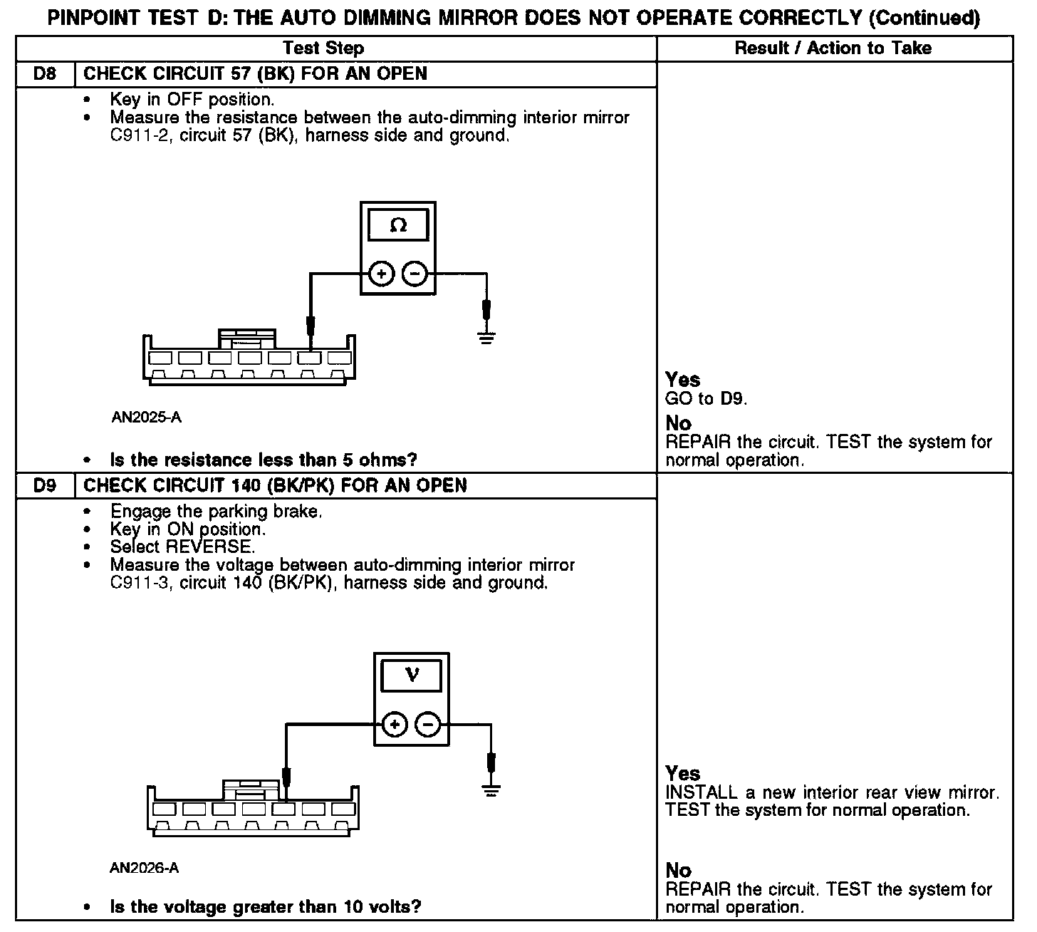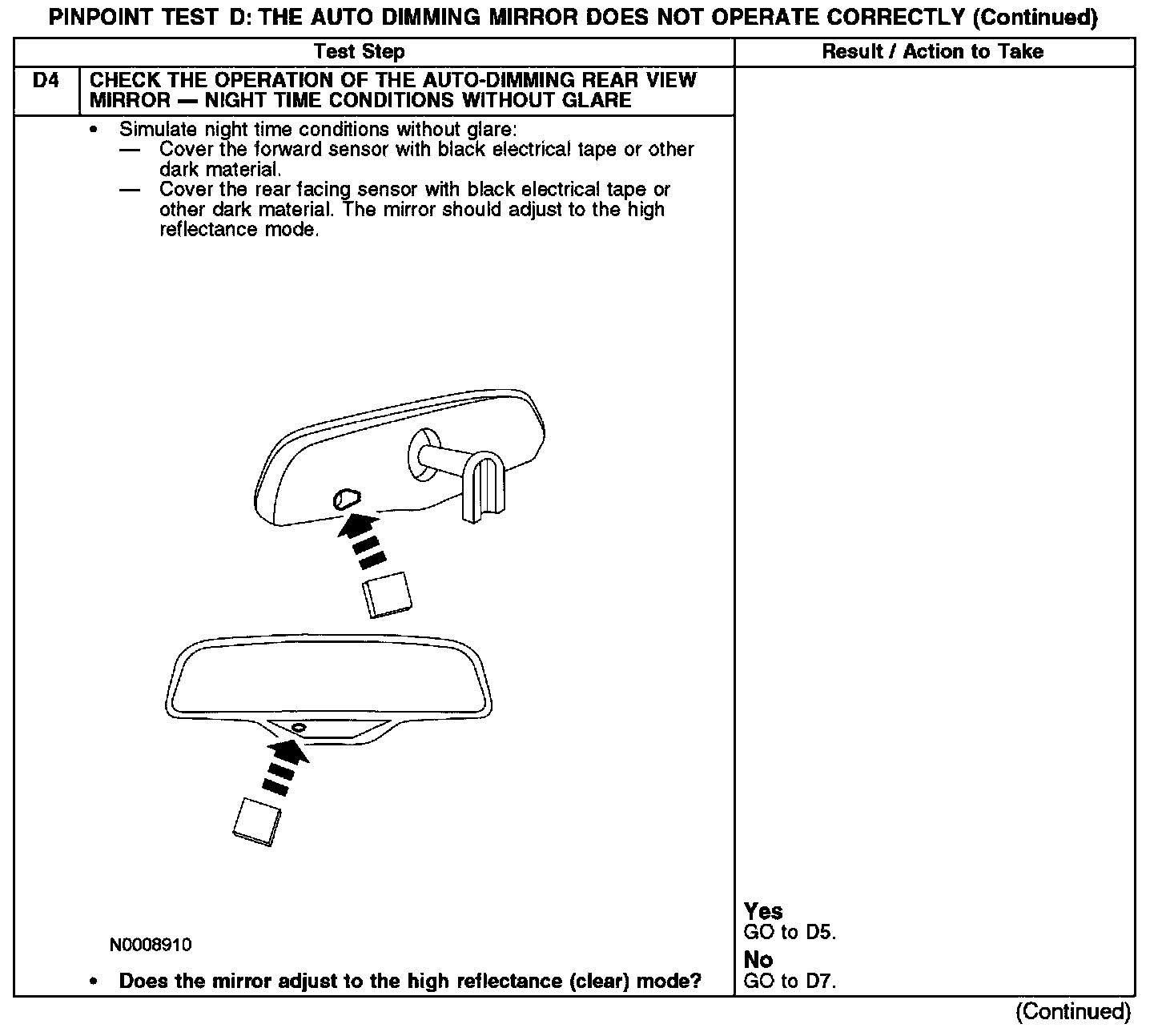 PINPOINT TEST D: THE AUTO DIMMING MIRROR DOES NOT OPERATE CORRECTLYD1-D2: