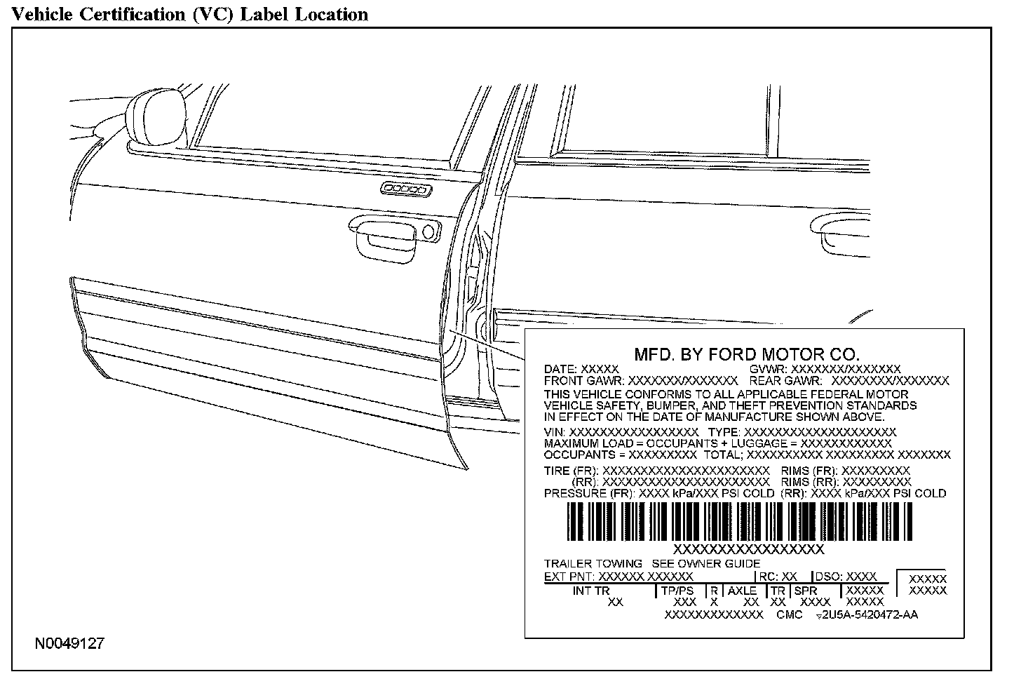 Vehicle Certification (VC) Label Location: