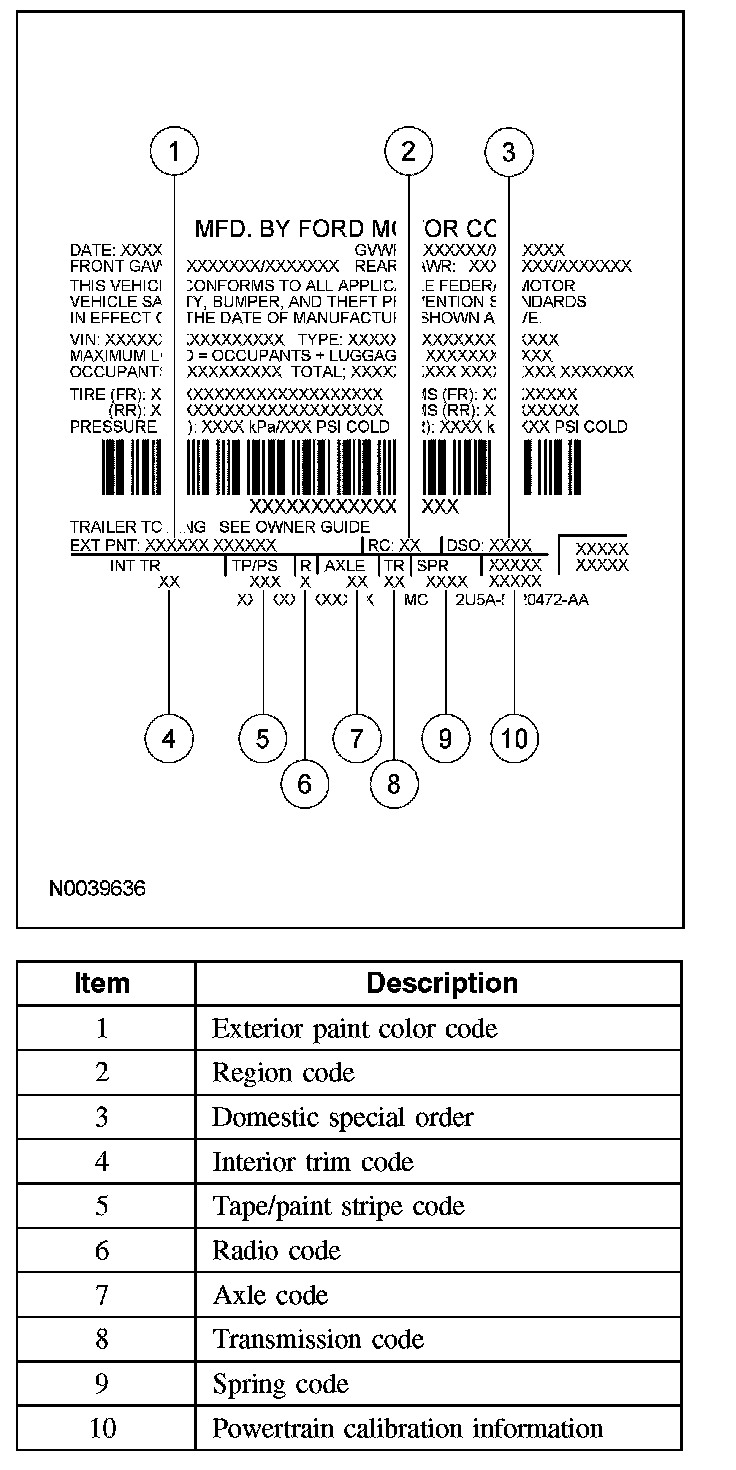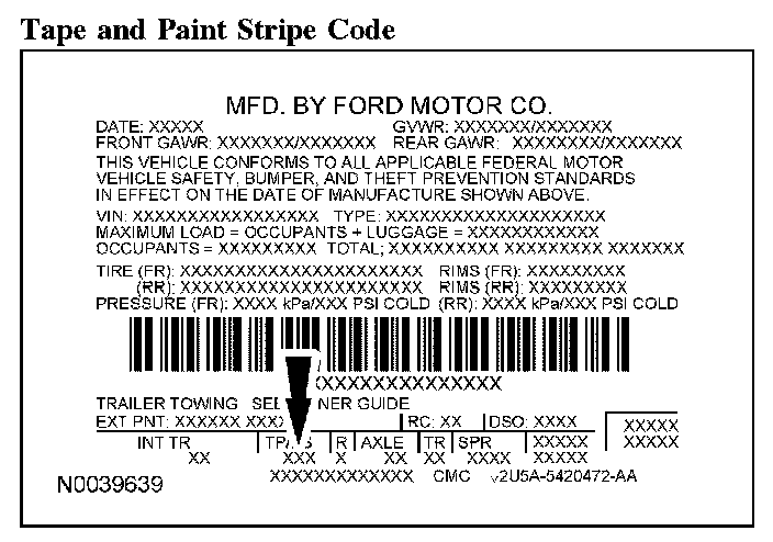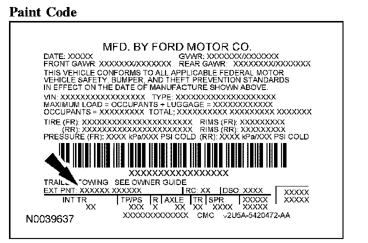 PAINT CODESVehicle Certification Label: