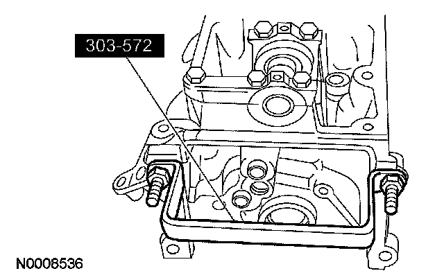 2. CAUTION: Cylinder head machining or milling is not authorized by the Ford Motor Company. Cylinder head flatness must be within 0.0254 mm (0.001 inch) across a 38.1 mm (1.5 inch) square area.