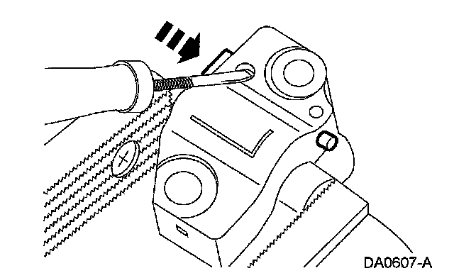 10. Using a small screwdriver or pick, push back and hold the ratchet mechanism.