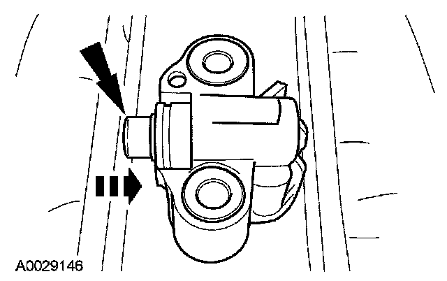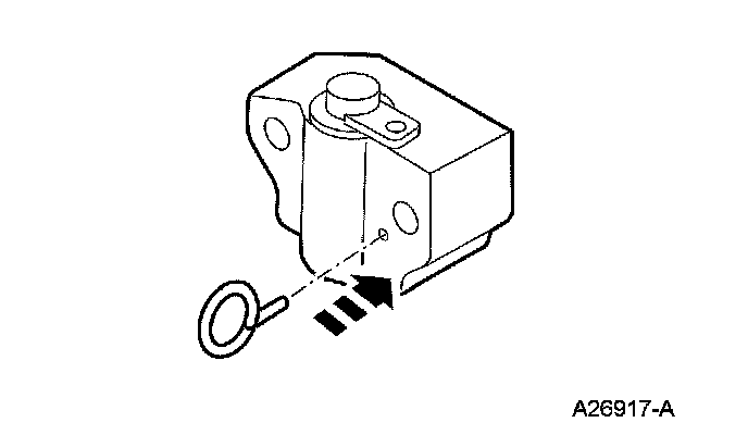 12. Install a paper clip into the hole of each tensioner housing to hold the ratchet assembly and plunger in during installation.