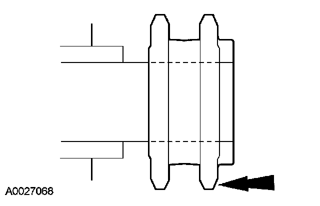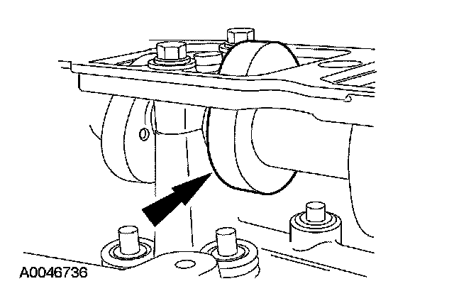 13. CAUTION: If one or both tensioner mounting bolts are loosened or removed, the tensioner-sealing bead must be inspected for seal integrity. Any cracks, tears, cuts or separation from the tensioner body or permanent compression of the seal bead, will require replacement of the tensioner.