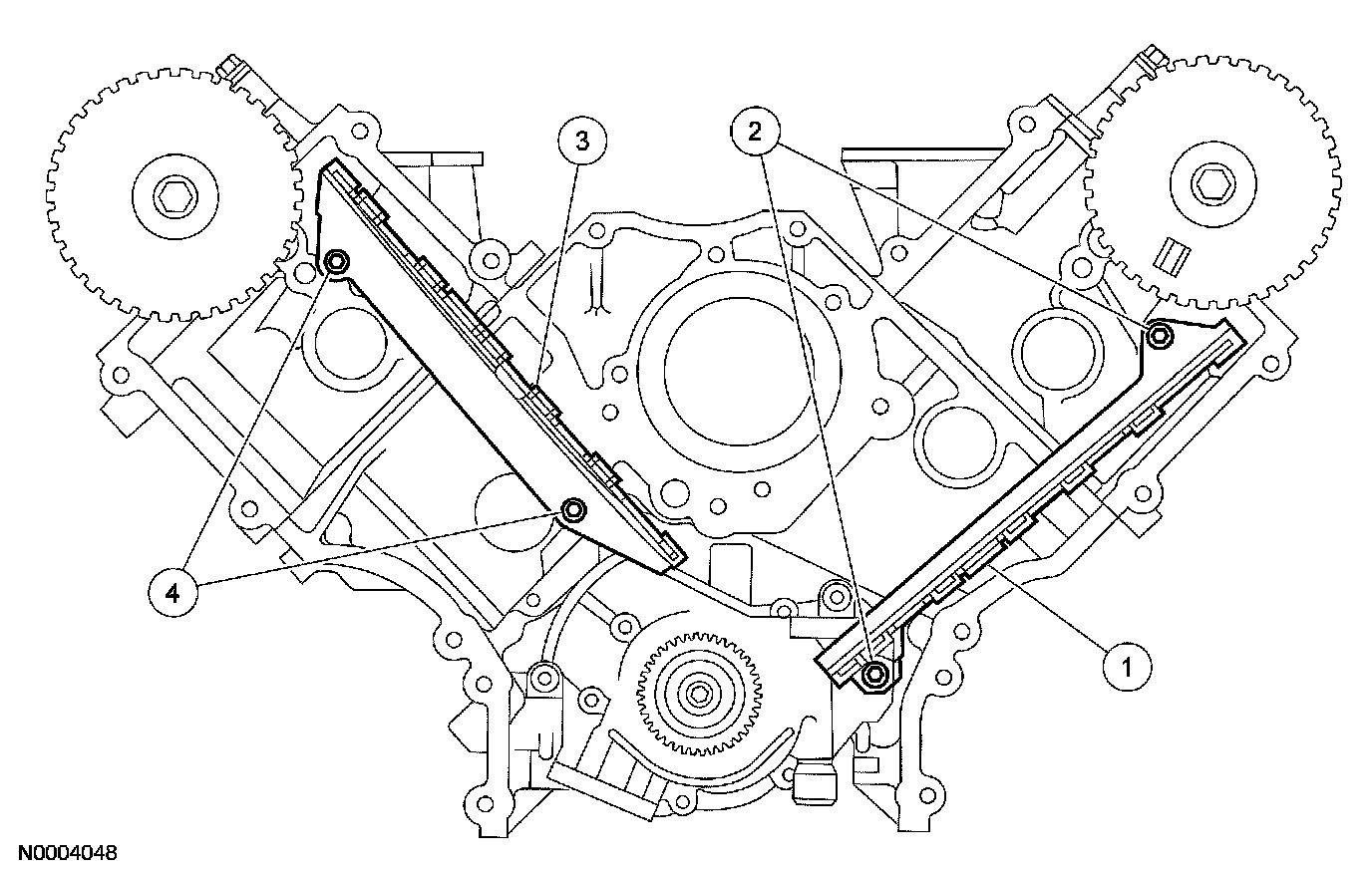19. Install the timing chain guides.