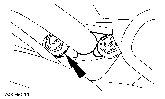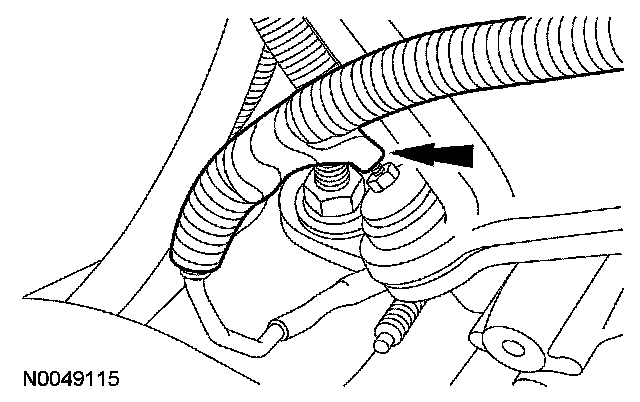 12. Detach the generator battery cable retainer from the RH valve cover stud bolt.
