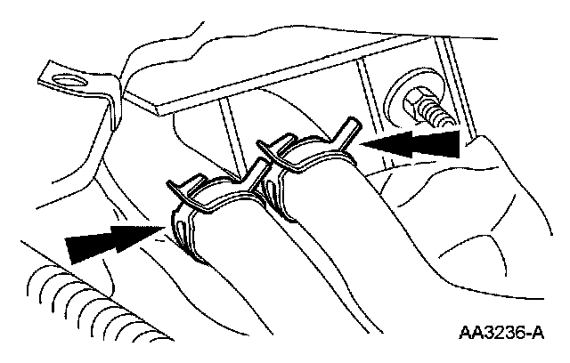 33. Disconnect the engine wiring harness retainers from the A/C compressor.