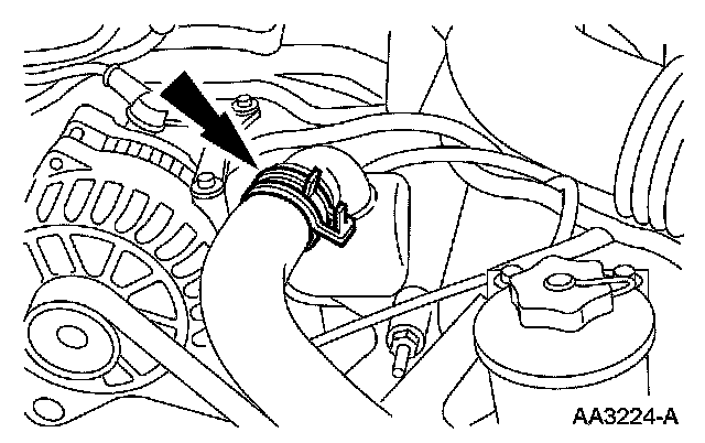 20. Disconnect the upper radiator hose from the hose connection. Secure the hose to the radiator assembly.