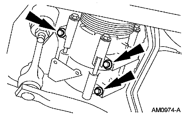 35. Remove the 3 bolts and position the A/C compressor aside.