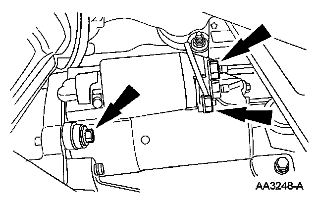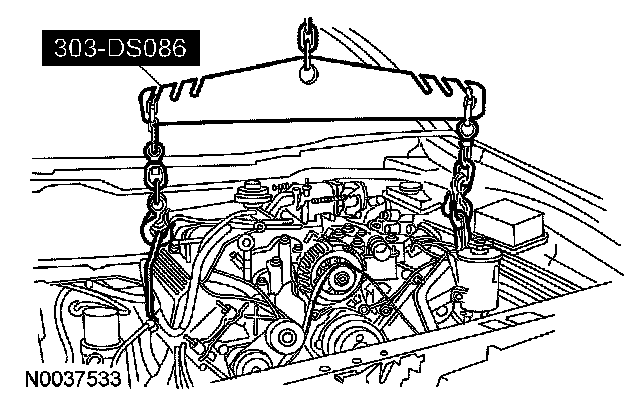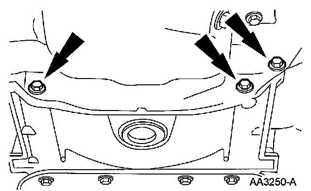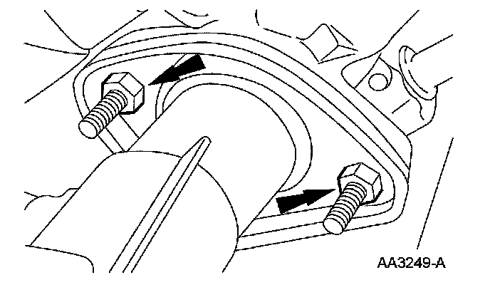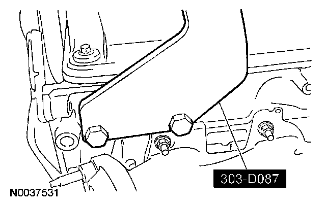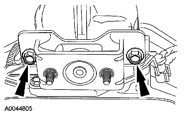 45. Raise the transmission and remove the rear transmission insulator bolts.