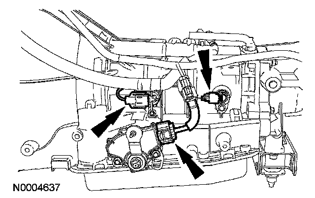 48. Disconnect the output shaft speed sensor, transmission range sensor and the turbine shaft speed sensor electrical connectors.