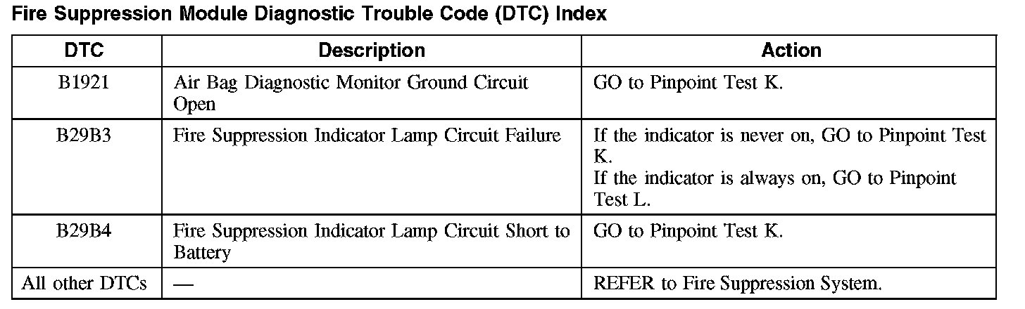 Fire Suppression Module DTC Chart
