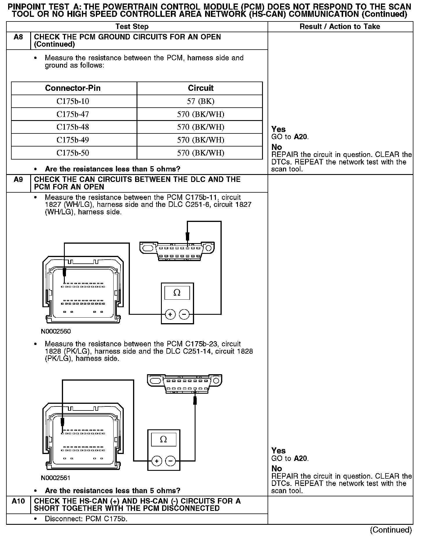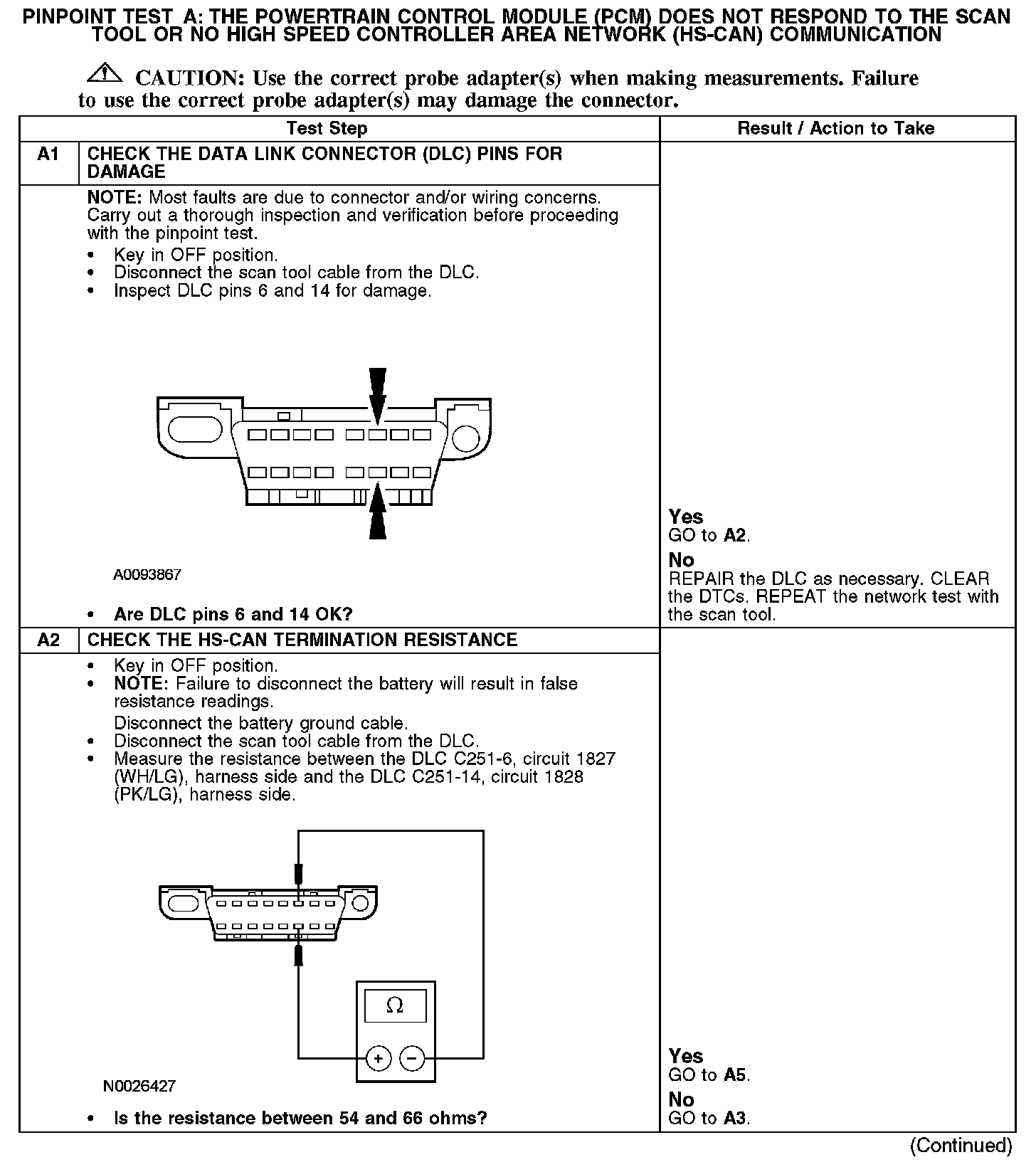 PINPOINT TEST A: THE POWERTRAIN CONTROL MODULE (PCM) DOES NOT RESPOND TO THE SCAN TOOL, OR NO HIGH SPEED CONTROLLER AREA NETWORK (HS-CAN) COMMUNICATIONA1-A2: