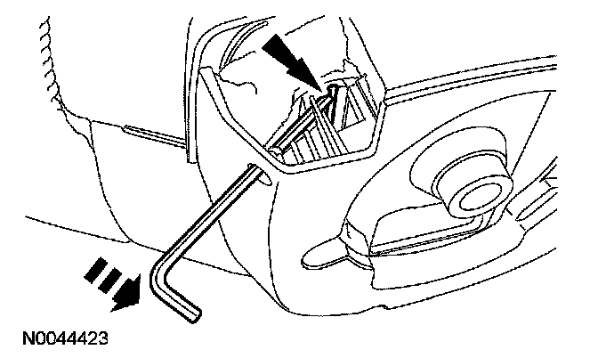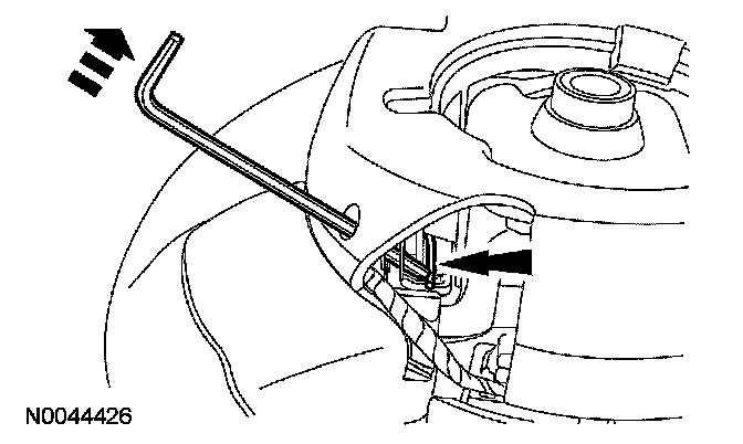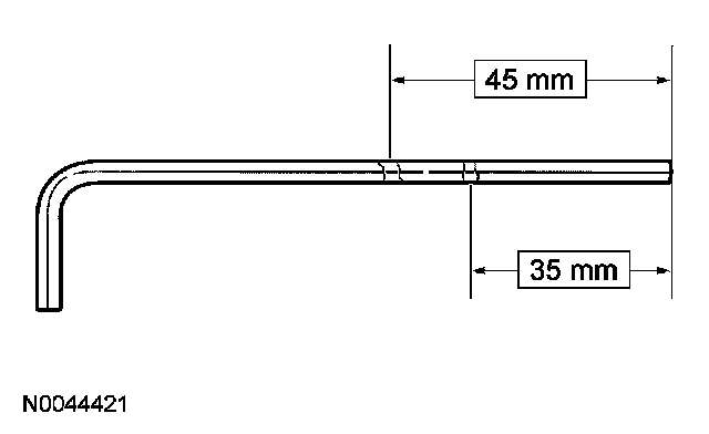 Using a 4 mm (0.15 in) Allen wrench or suitable tool, place 2 marks on the tool as an aid to remove the driver air bag module. One mark should be approximately 35 mm (1.37 in) from the end of the tool with the second mark approximately 45 mm (1.77 in) from the end of the tool.