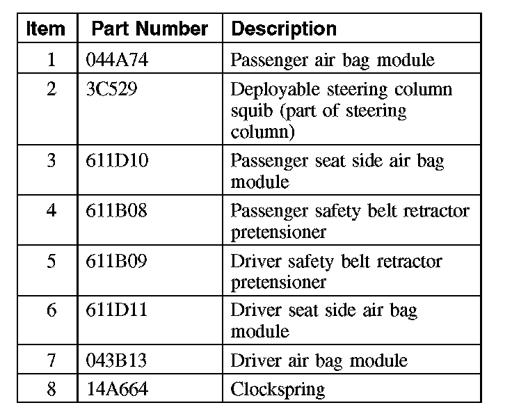 Air Bag and Safety Belt Pretensioner Supplemental Restraint System (SRS) Deployable Components (Part 2):
