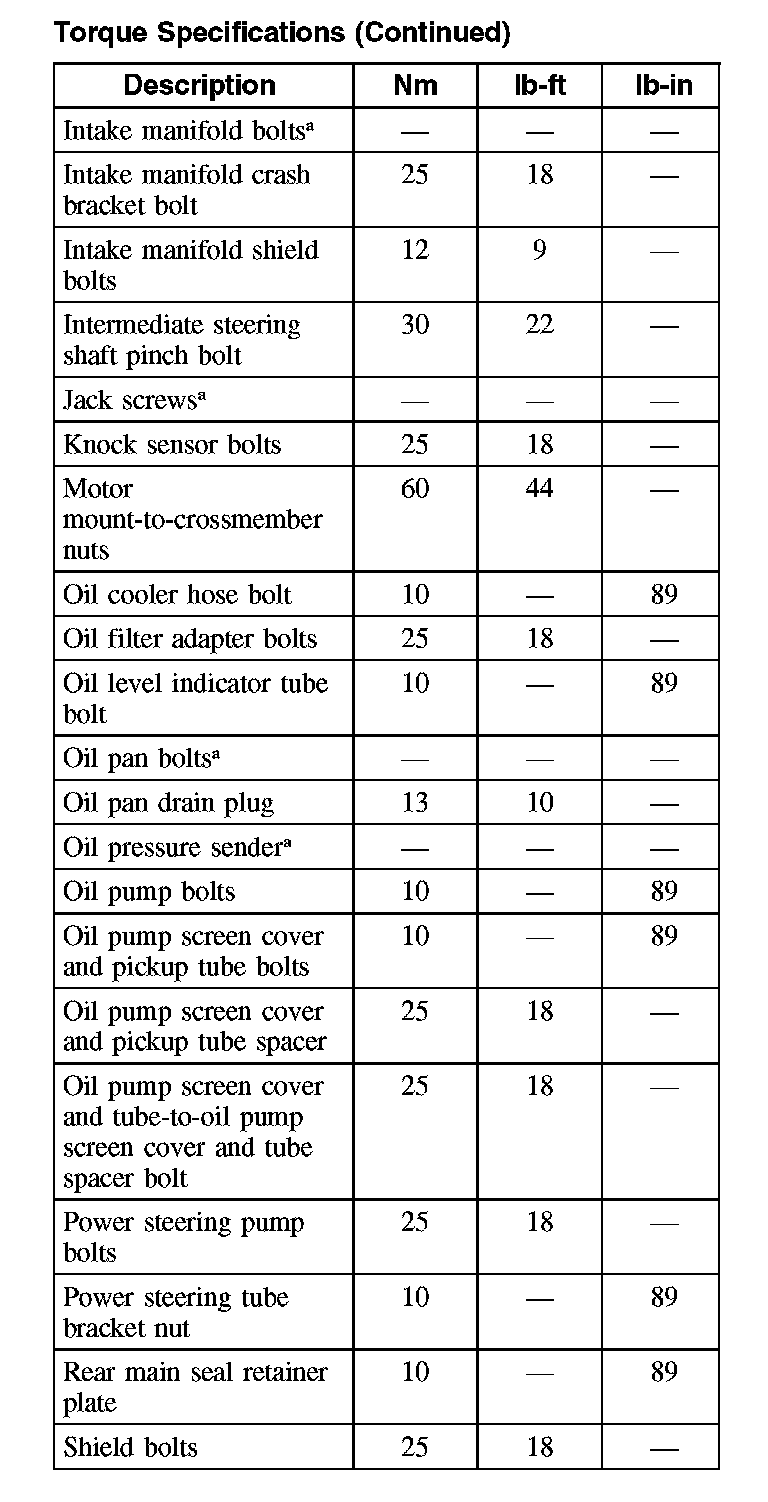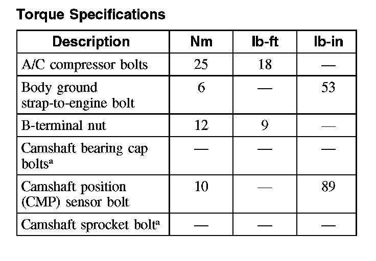 Torque Specifications: