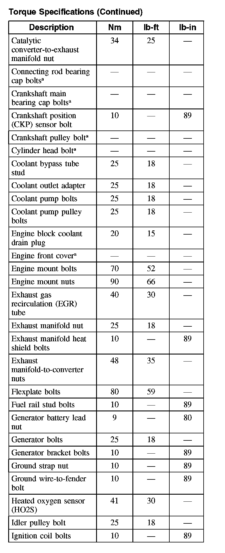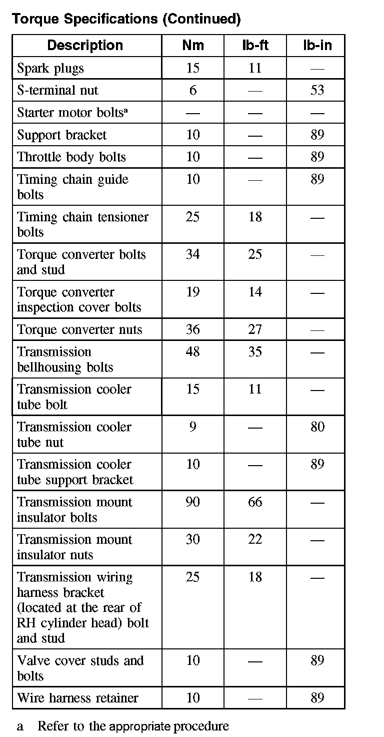 Torque Specifications