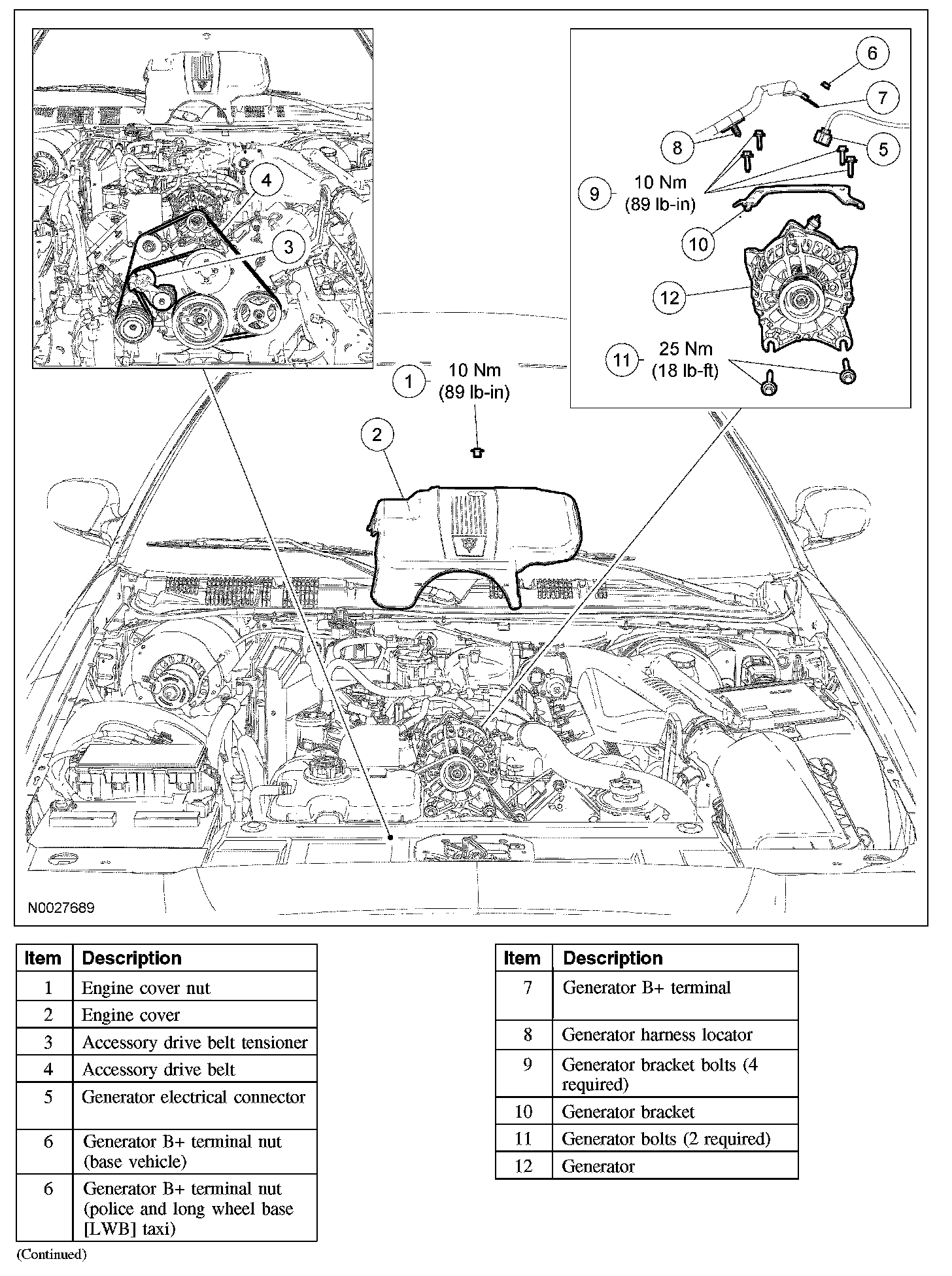 - To install, tighten to 12 Nm (9 lb-ft) (police interceptor/long wheel base [LWB] taxi).