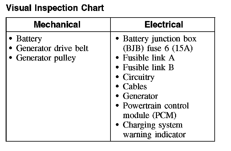 NOTE: DTC P0622 can be set by the loss of the communication lines between the generator and the PCM. The charging system warning indicator then illuminates until the engine is operated at greater than 4,500 rpm (approximately wide open throttle [WOT]) for a minimum of 3 seconds. At this time, the generator self-excites. The charging system warning indicator remains illuminated, and the generator operates in a default mode (approximately 13.5 volts) until the engine is turned off.