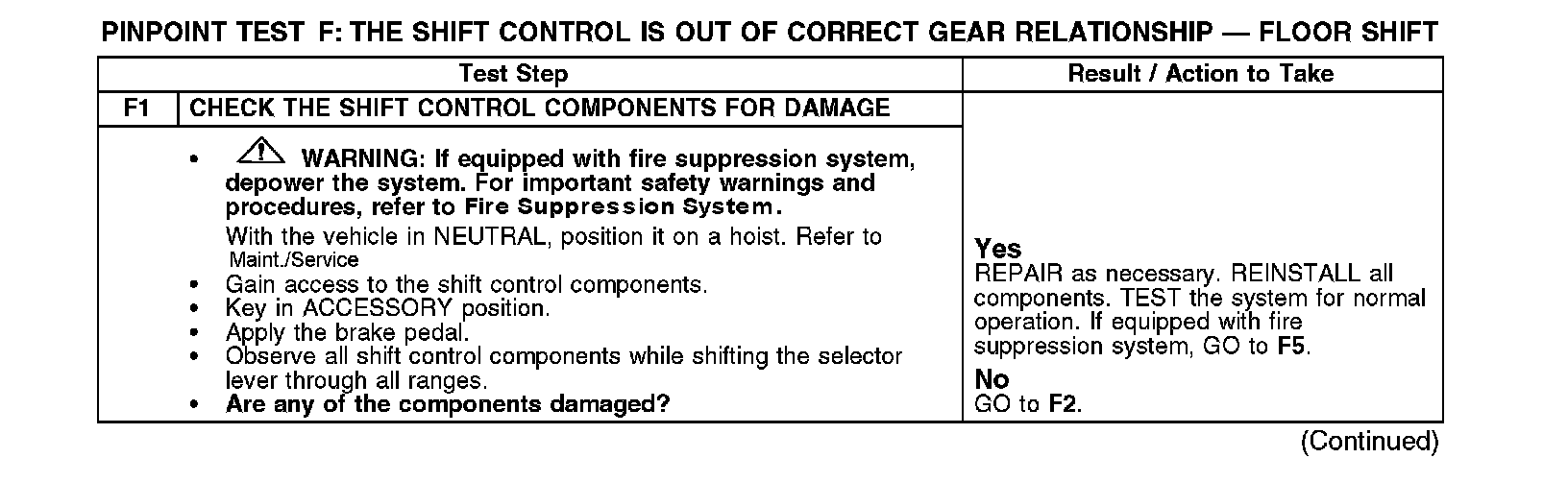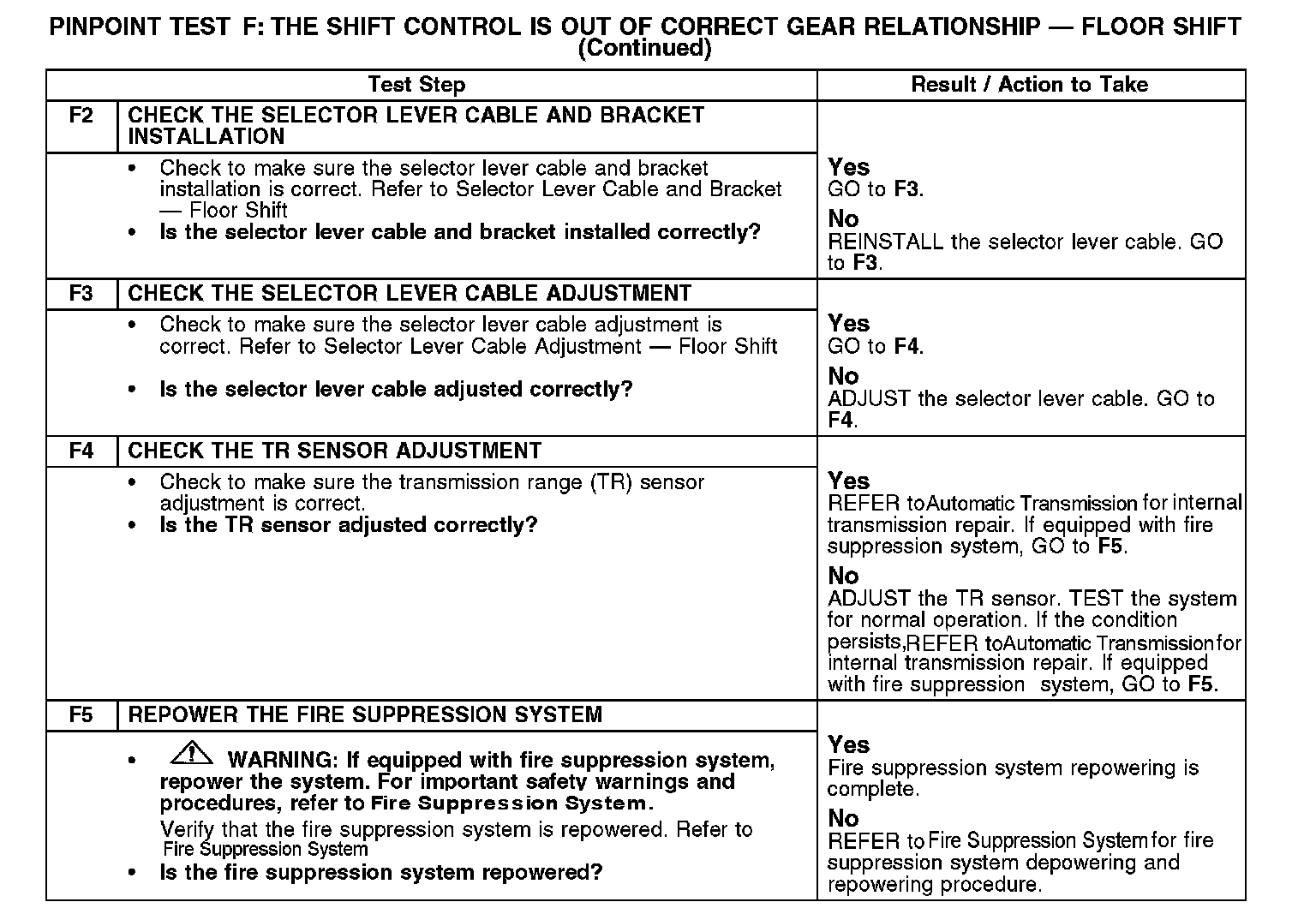 Test F: The Shift Control Is Out of Correct Gear Relationship - Floor Shift