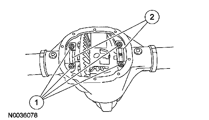 6. CAUTION: Always install the differential bearing caps in their identified locations and positions.
