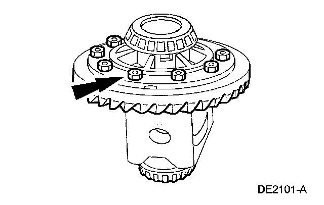 8. CAUTION: Do not damage the differential ring gear bolt hole threads.